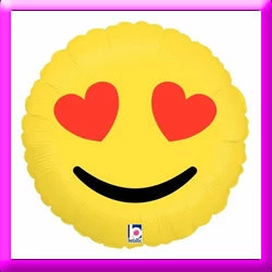 18″ Foil Balloon – smiling emoji face with heart eyes (Love)