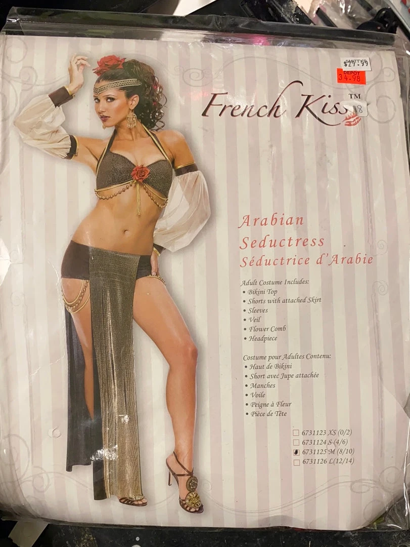 Sexy Arabian seductress, bikini top, shorts, veil, size medium (8-10)