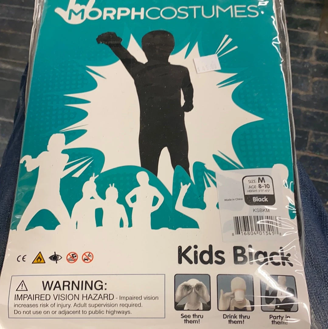 Black morphsuit, kids, size medium, 8-10