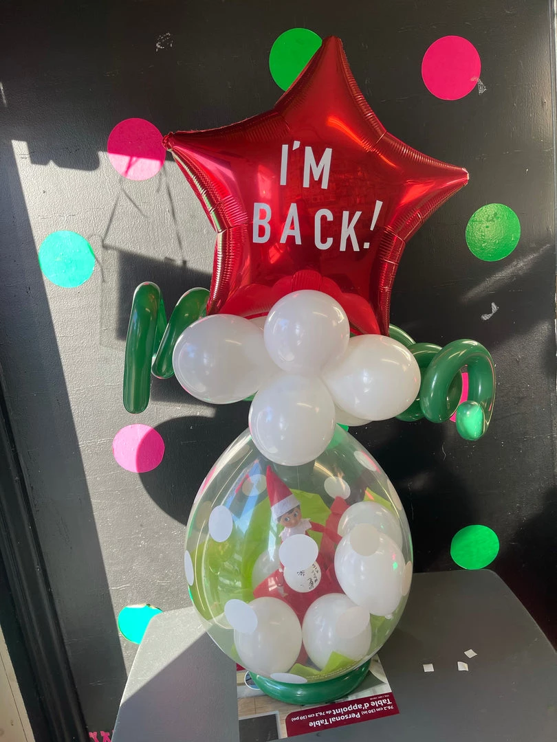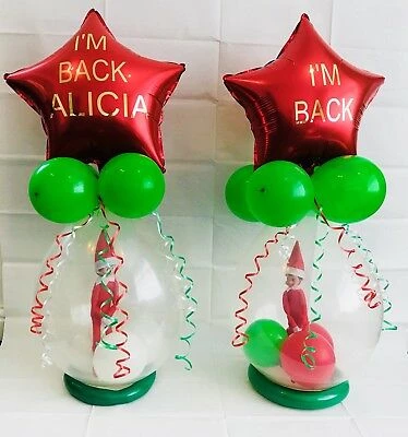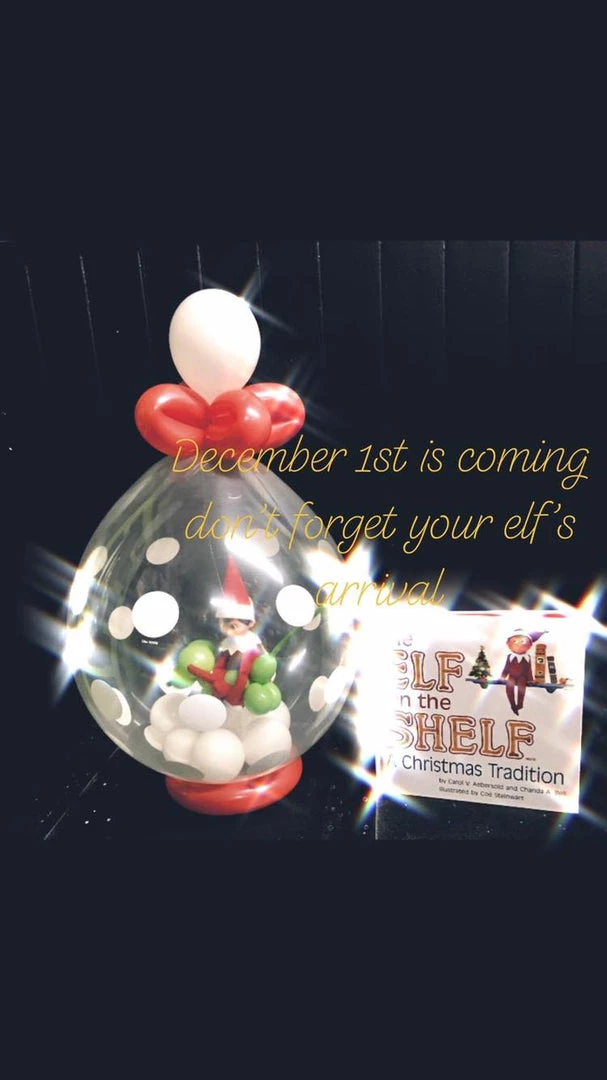 You bring us your elf… we will stuff it inside of a balloon including filler and some treats! as well as a custom balloon on the top!