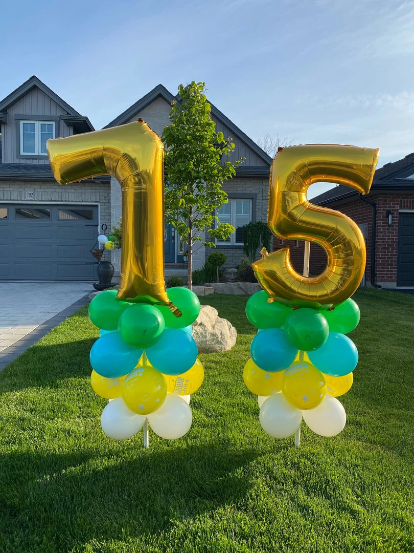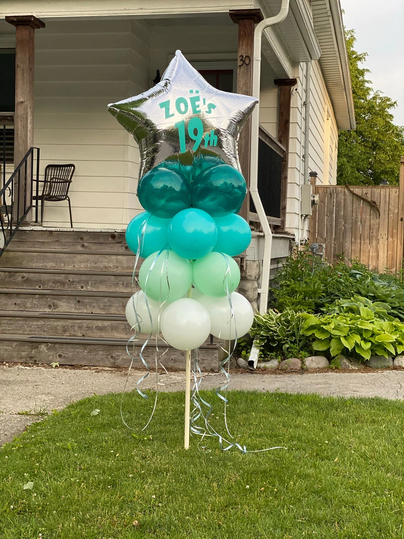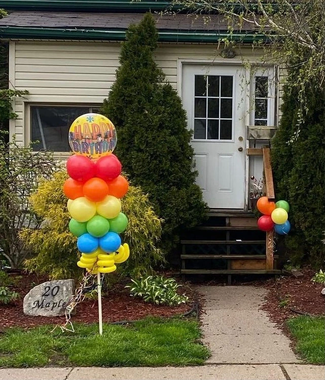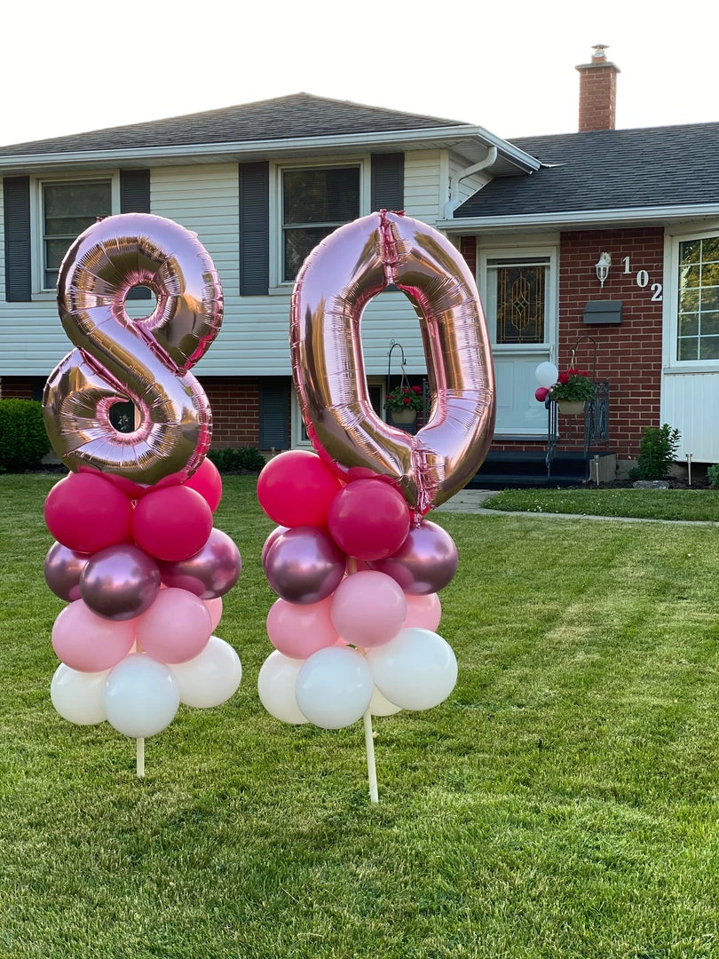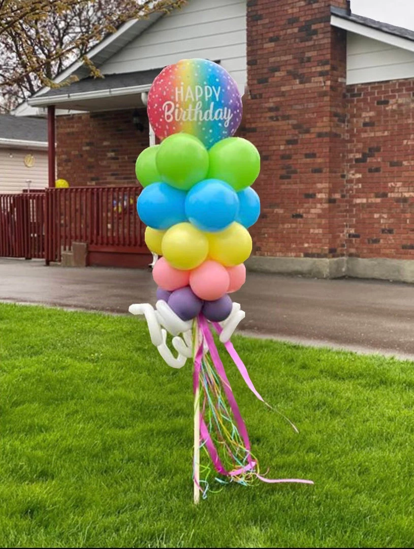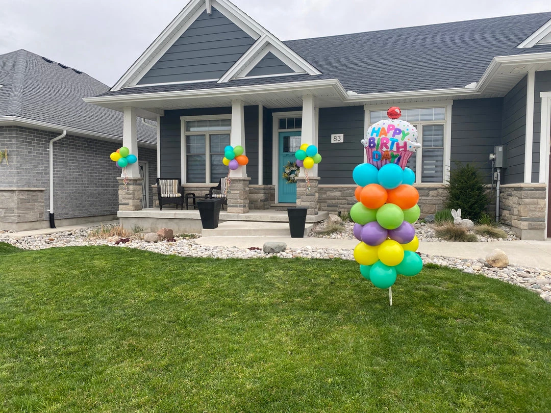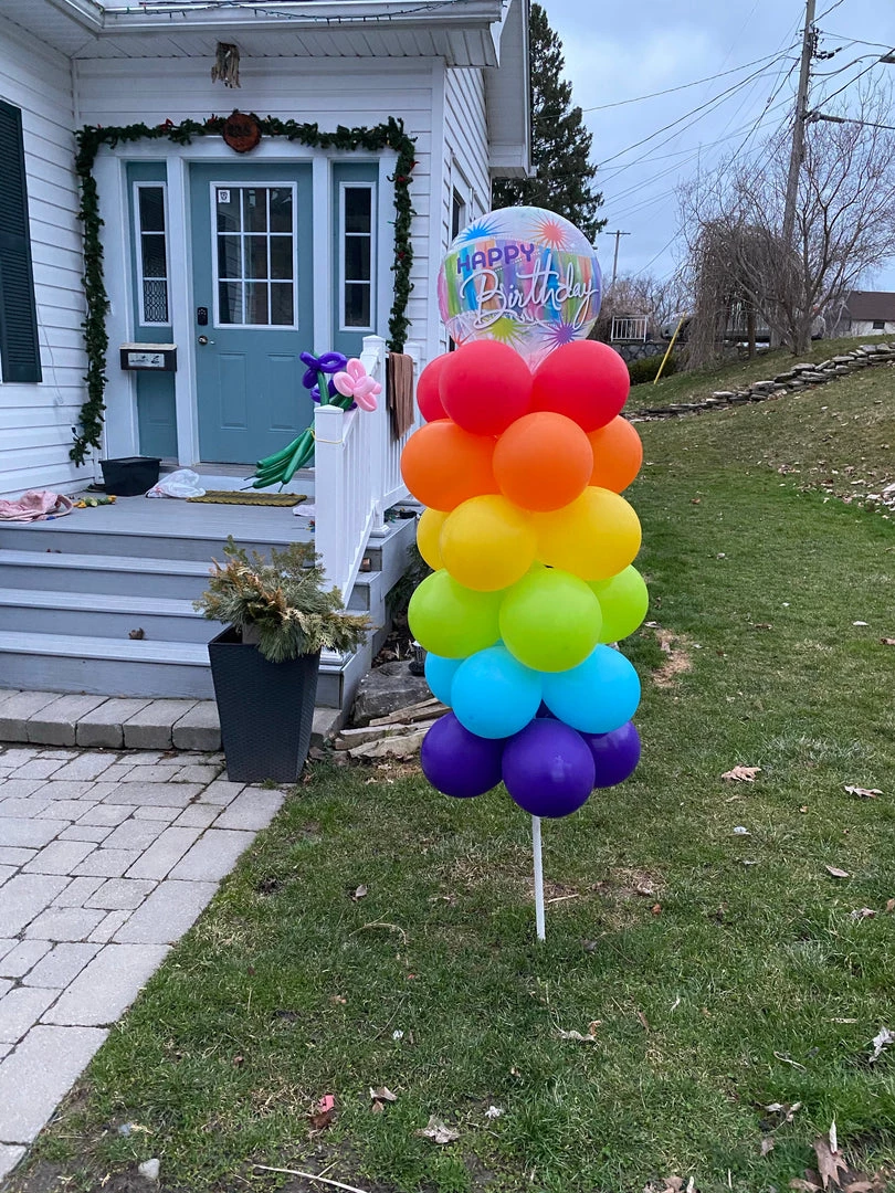 Approximately 6ft tall. Any occasion! Any colour scheme! beautiful Balloon Yard Art for birthday, anniversary, graduation … anything !