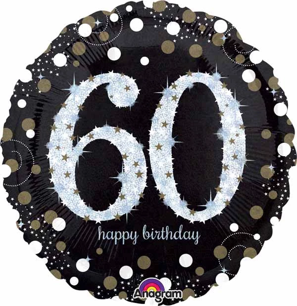 Dotsy’s Entertainment Co. SPARKLING BIRTHDAY 60 HOLO 18″ Round Foil Balloon