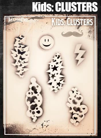 This Special Edition Kids Stencil Kit contains Various kid-sized stencil designs including Hearts, Stars, Butterflies, Circles, Happy Face and Mustache!
