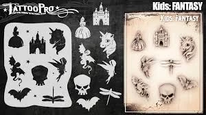 This Special Edition Kids Stencil Kit contains Various kid-sized stencil designs including, Princess, Castle, Unicorn, Dragon, Fairy, Skull, Dragonfly & Bat!