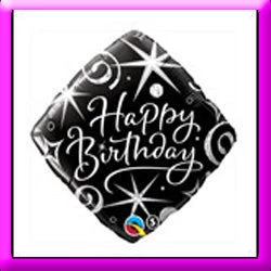 18 In Diamond Qualatex balloon Happy Birthday Black silver
